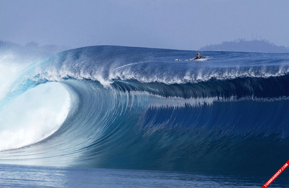 Cô gái trẻ đang chinh phục ngọn sóng lớn