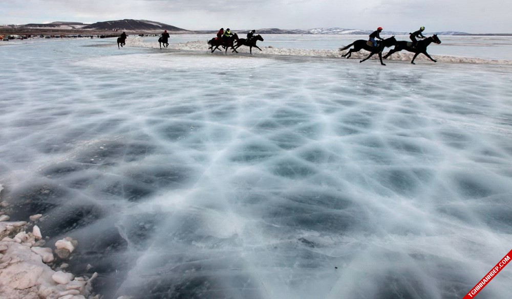 Cuộc thi đua ngựa trên sông Yenisei (Nga) bị đóng băng tạo nên trường đua tuyệt đẹp