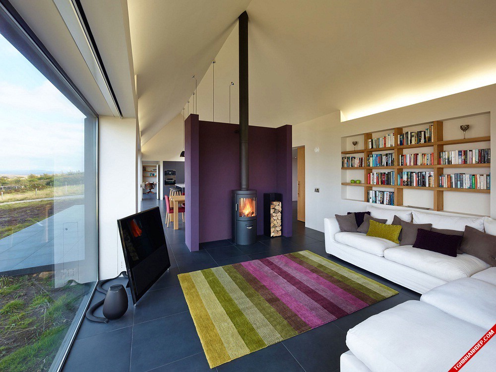 Dùng kệ sách để trang trí vách ngăn khiến ngôi nhà trông ấn tượng hơn hẳn