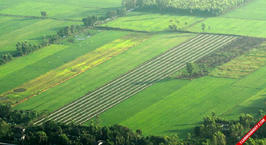 Ruộng lúa được thâm canh đa dạng xen kẽ nhau