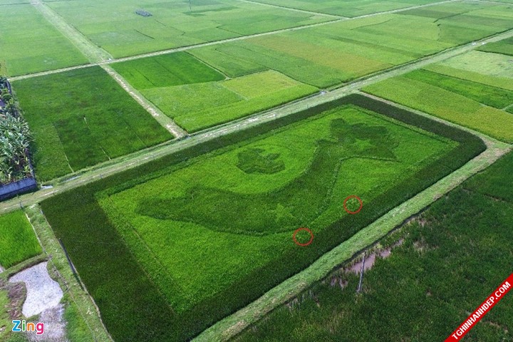 Hình bản đồ Việt Nam được khắc họa trên cánh đồng lúa ở Nghệ An.