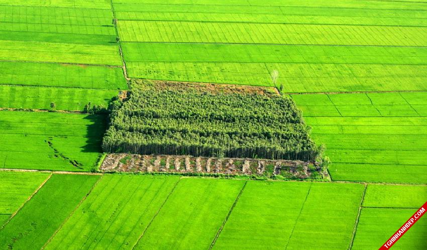 Góc chụp từ trên cao bao phủ cả cánh đồng