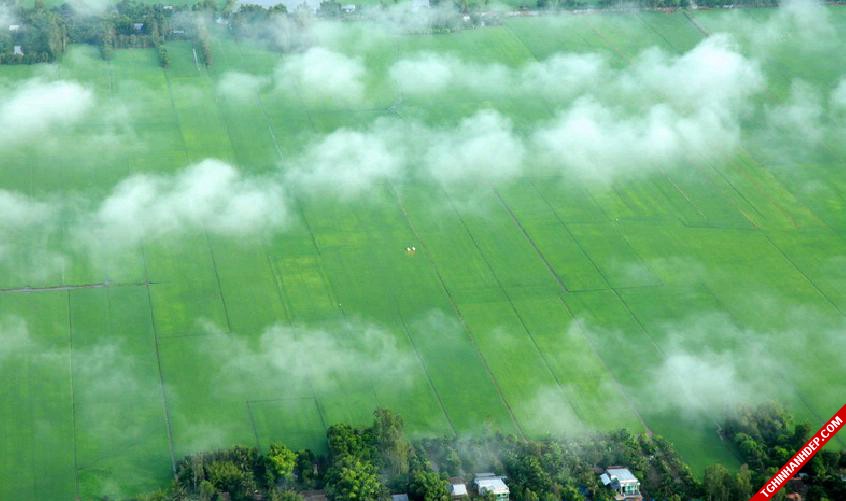 Đám mây trôi bềnh bồng che phủ cả cánh đồng