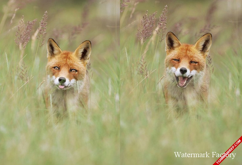 Bộ đôi biểu cảm siêu đáng yêu của chú cáo đỏ trên đồng cỏ
