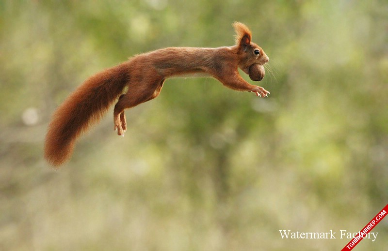 Sóc nhỏ đang cố gắng phi thật nhanh sau khi tìm được hạt dẻ