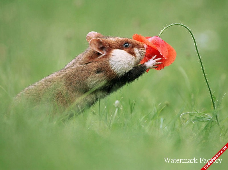 Hình ảnh đáng yêu khi chú chuột hamster ngửi cánh hoa