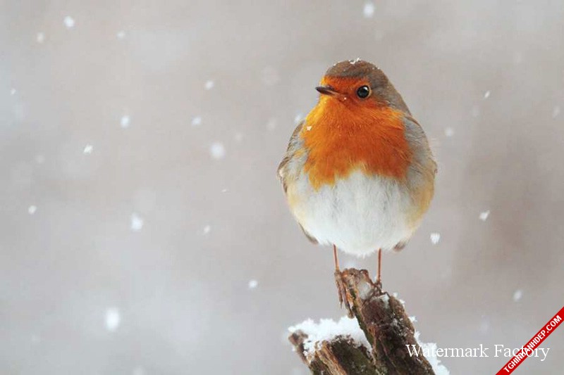 Chú chim đứng co ro lẻ loi trong gió lạnh tuyết rơi