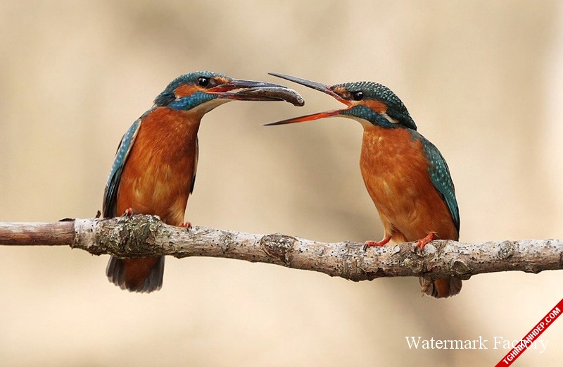 Khoảnh khắc mớm mồi cho nhau giữa 2 chú chim