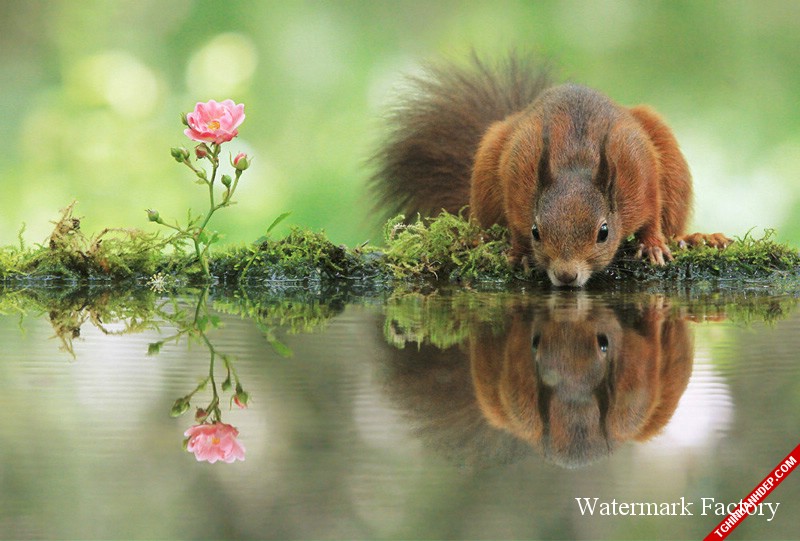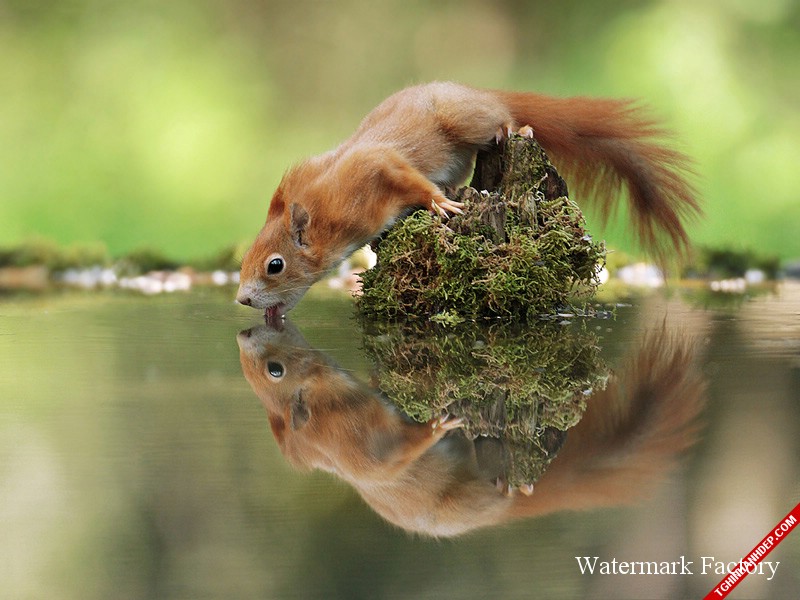 Sóc nâu ra ven hồ uống nước