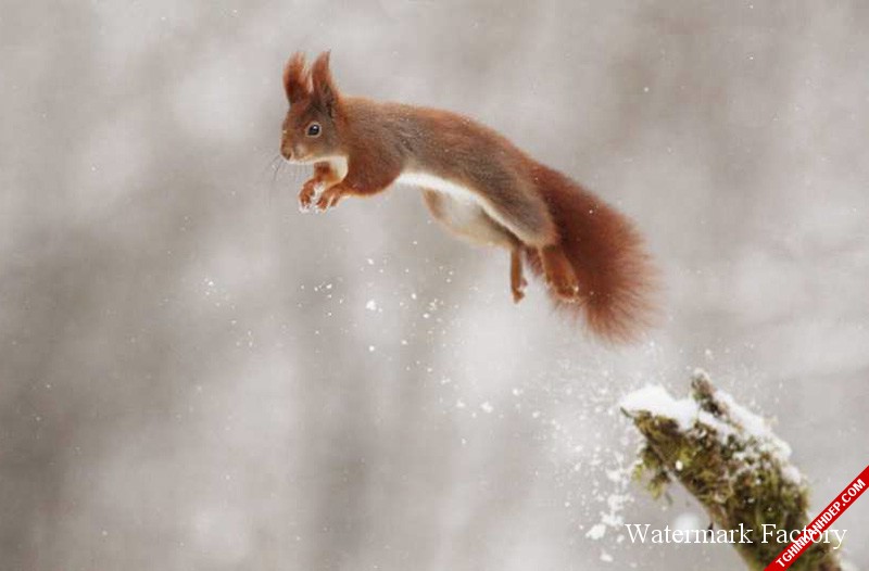 Cú phi thân từ trên cao giữa trời tuyết của sóc nâu